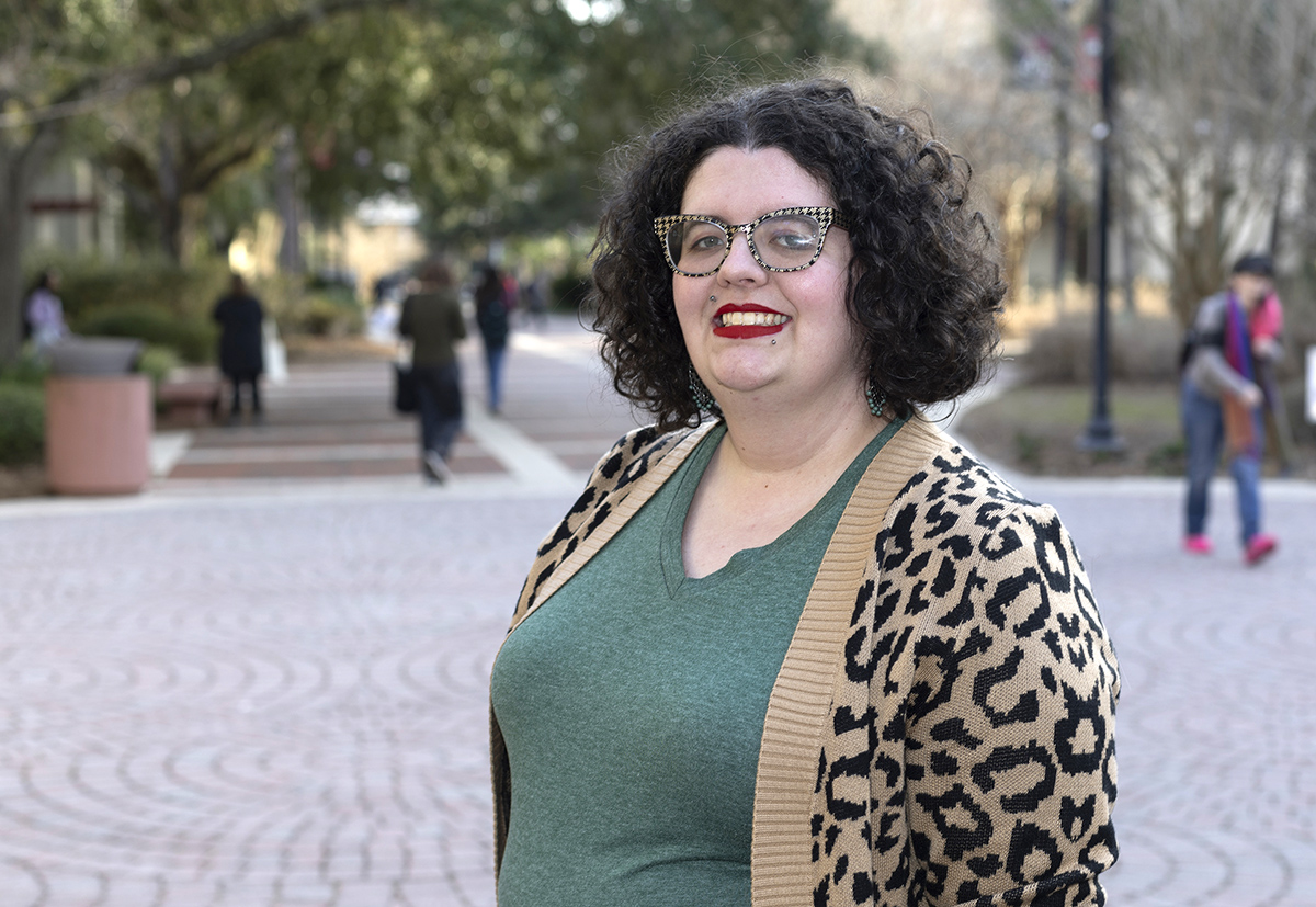 “For me, teaching is about more than just giving students the content and skills of my field,” she says. “It’s also about giving them space to figure out how they want to be in the world as adults. So, while I am directly teaching the skills of writing, I think my classroom — and all college classrooms — are places where students can build healthy habits surrounding work that they can carry with them into their futures, and I’m dedicated to fostering that and having active conversations about not just the work itself but also how we engage with the work positively.”